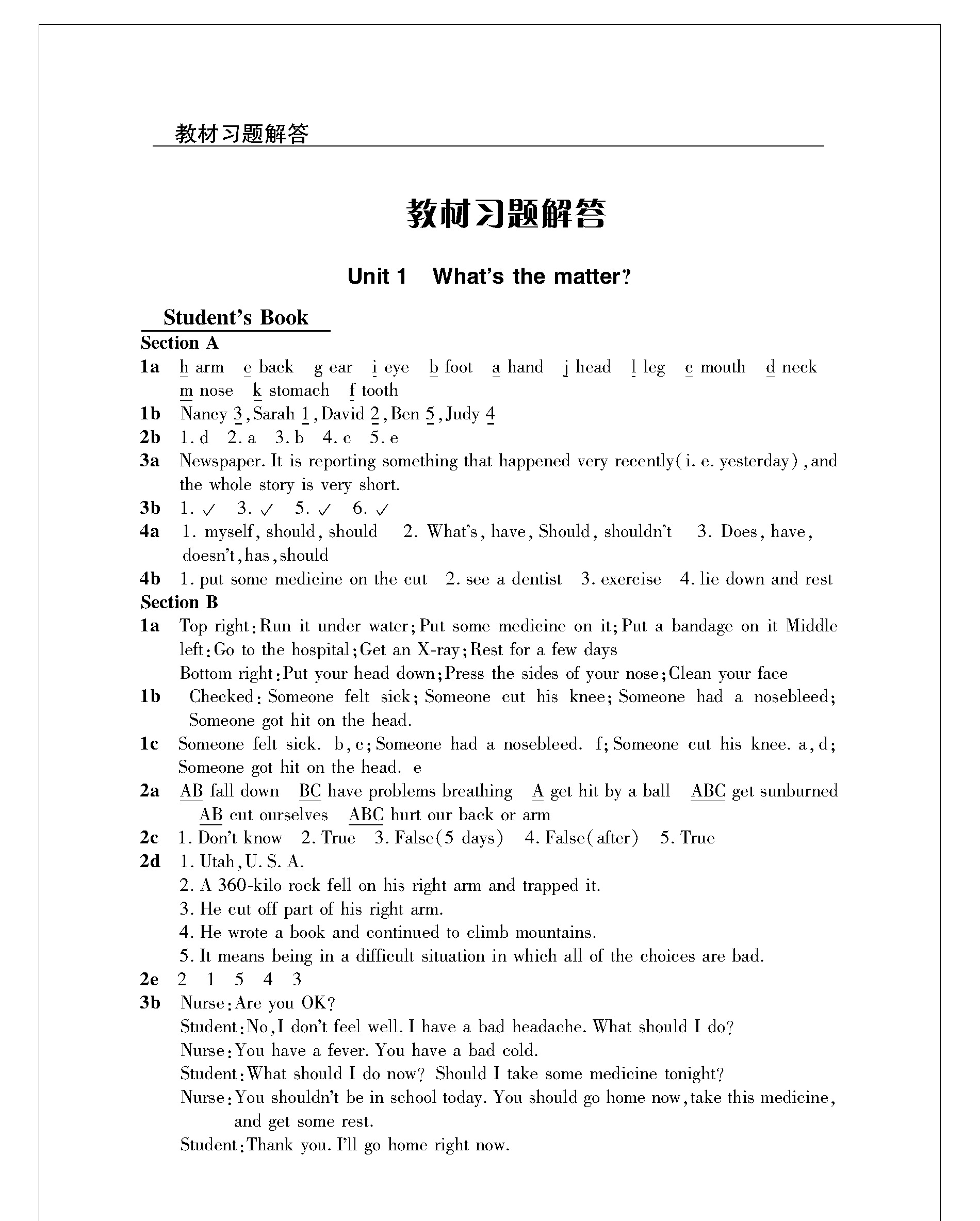 Unit 1 教材习题答案