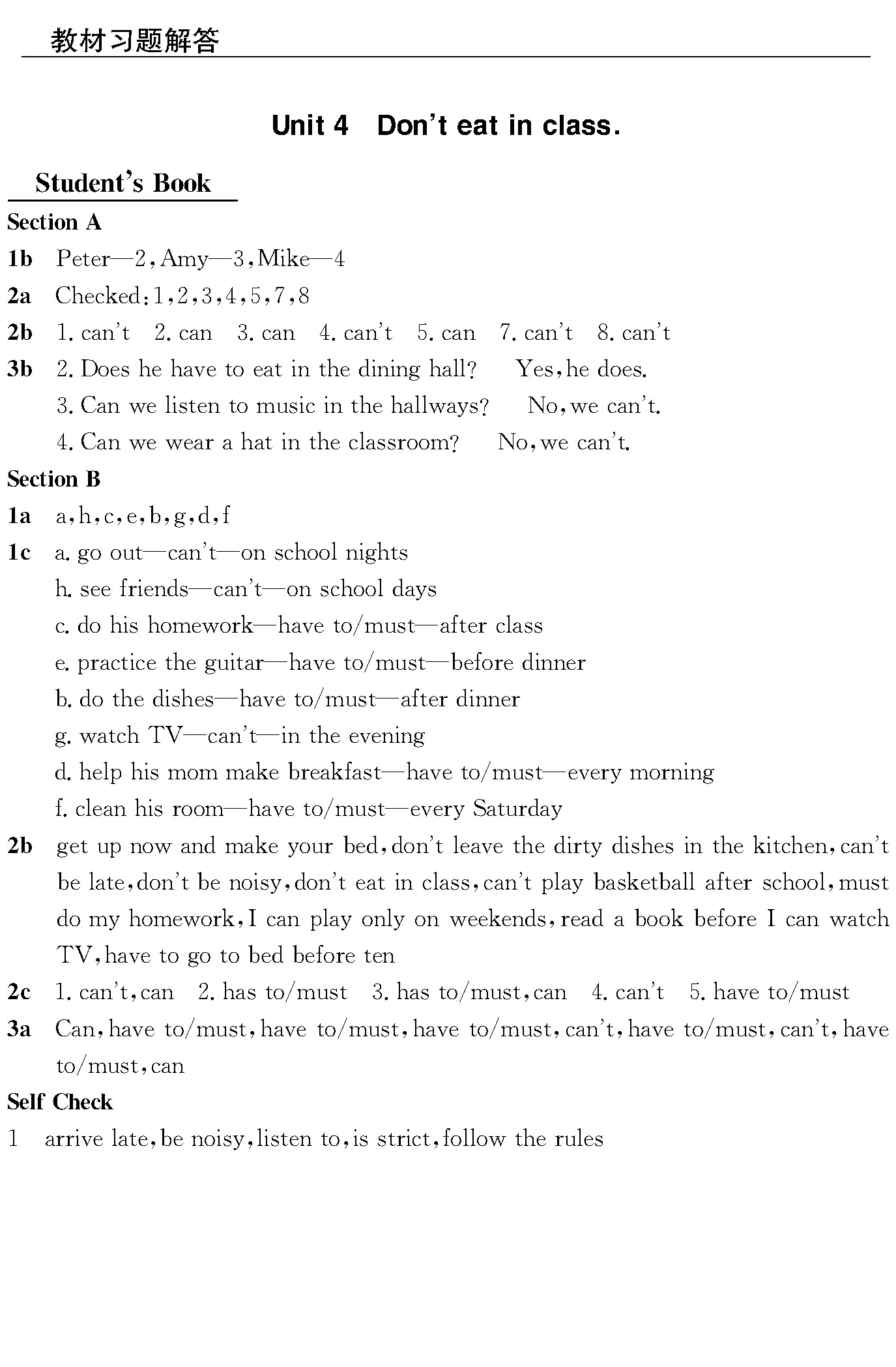 Unit 4 教材习题答案