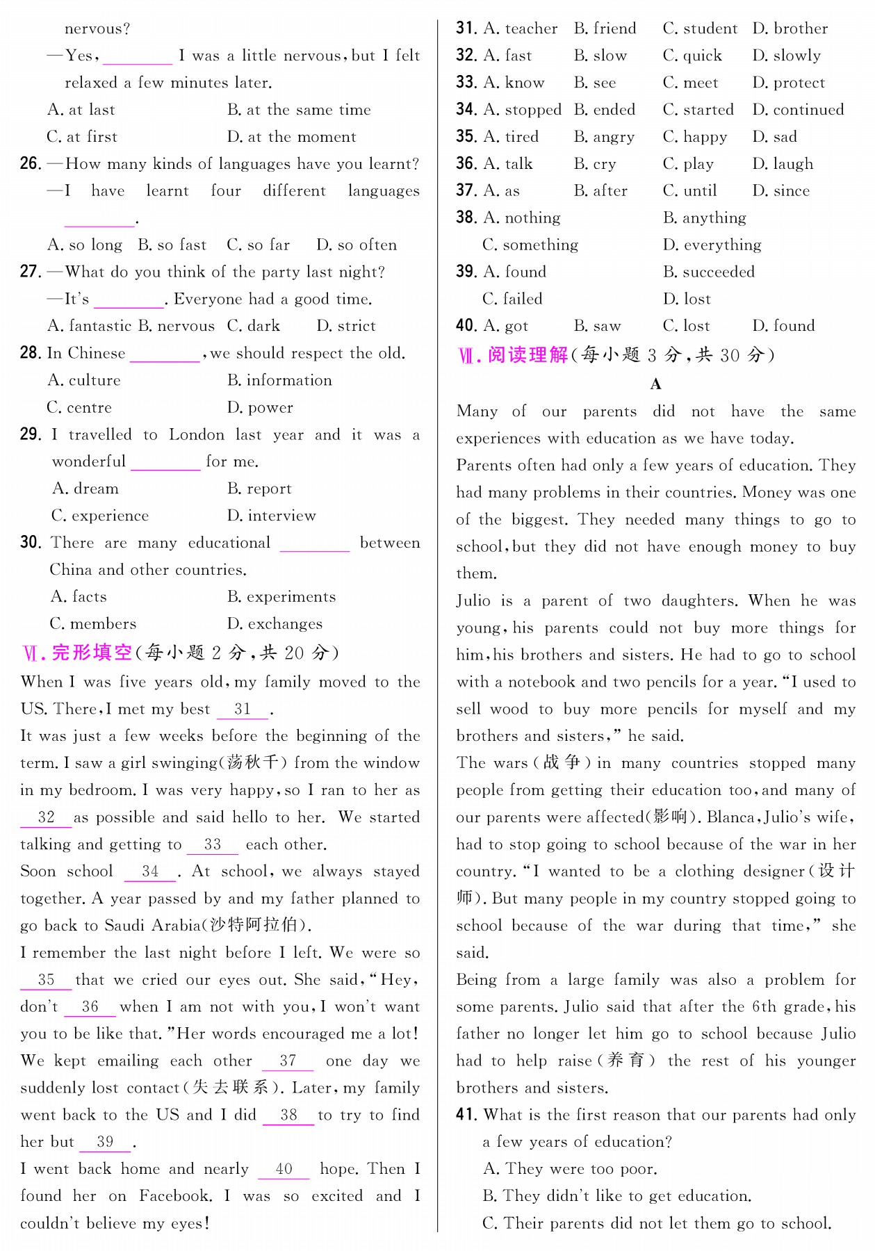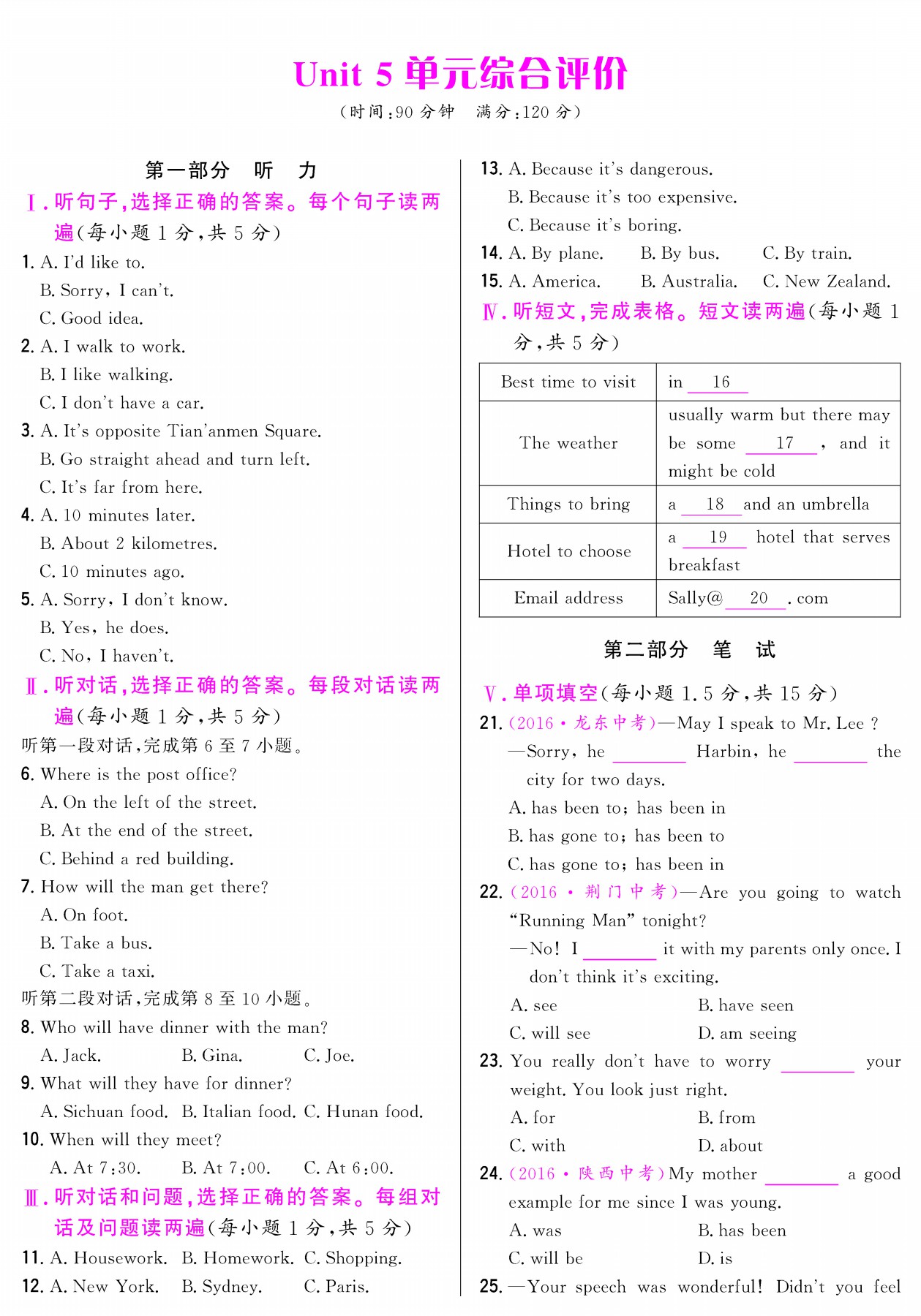Unit 5 单元综合评价