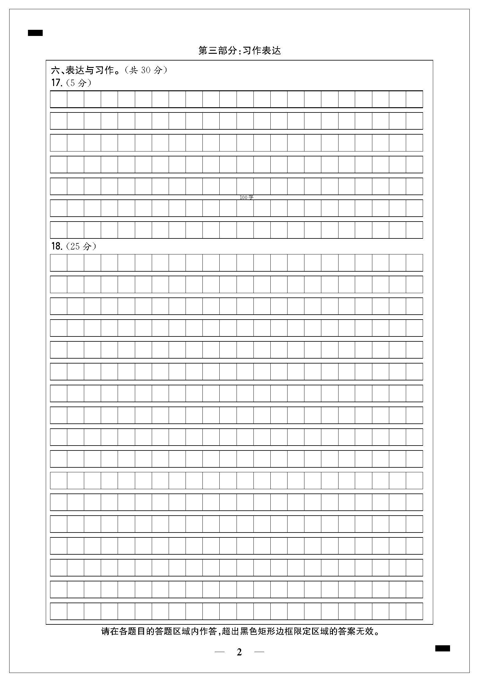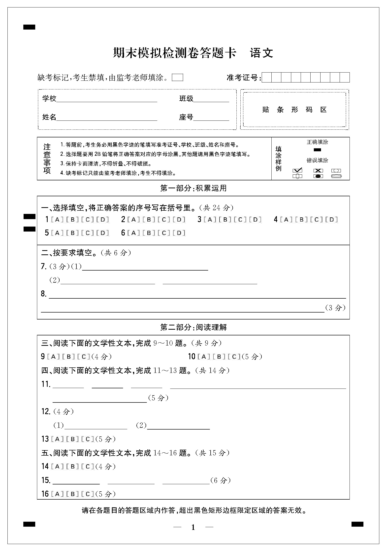 期末模拟检测卷答题卡21