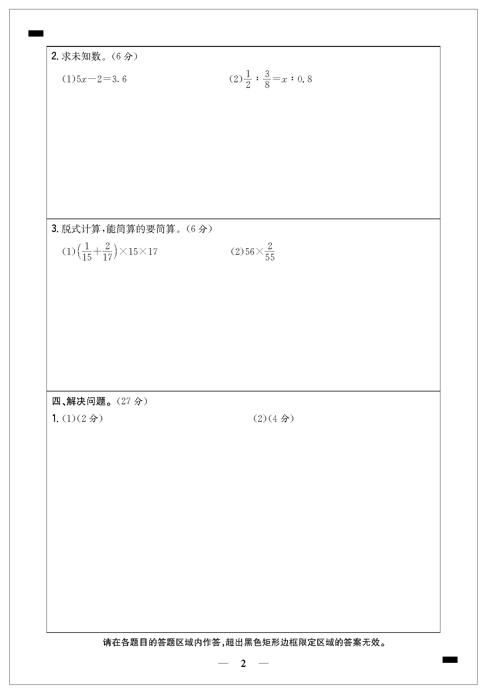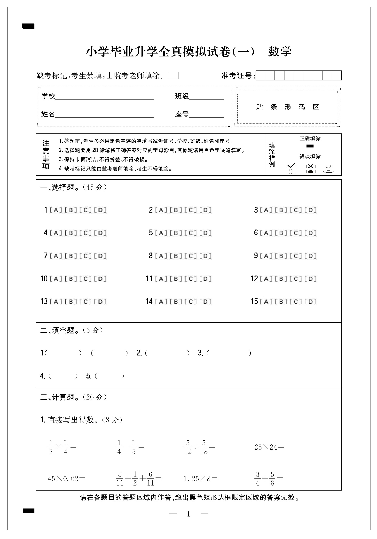 小学毕业升学全真模拟试卷(一)答题卡21