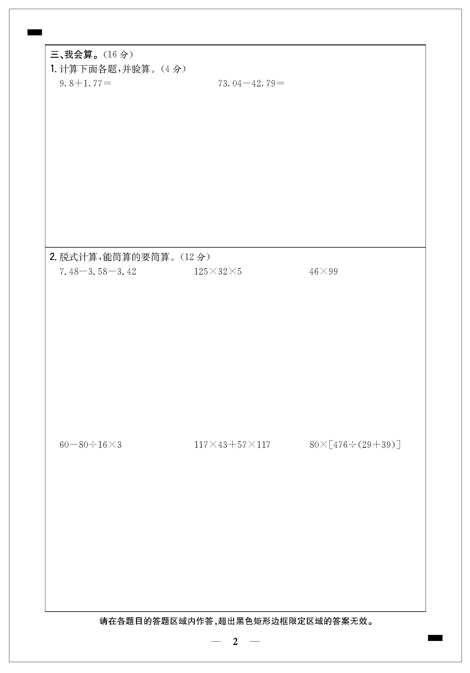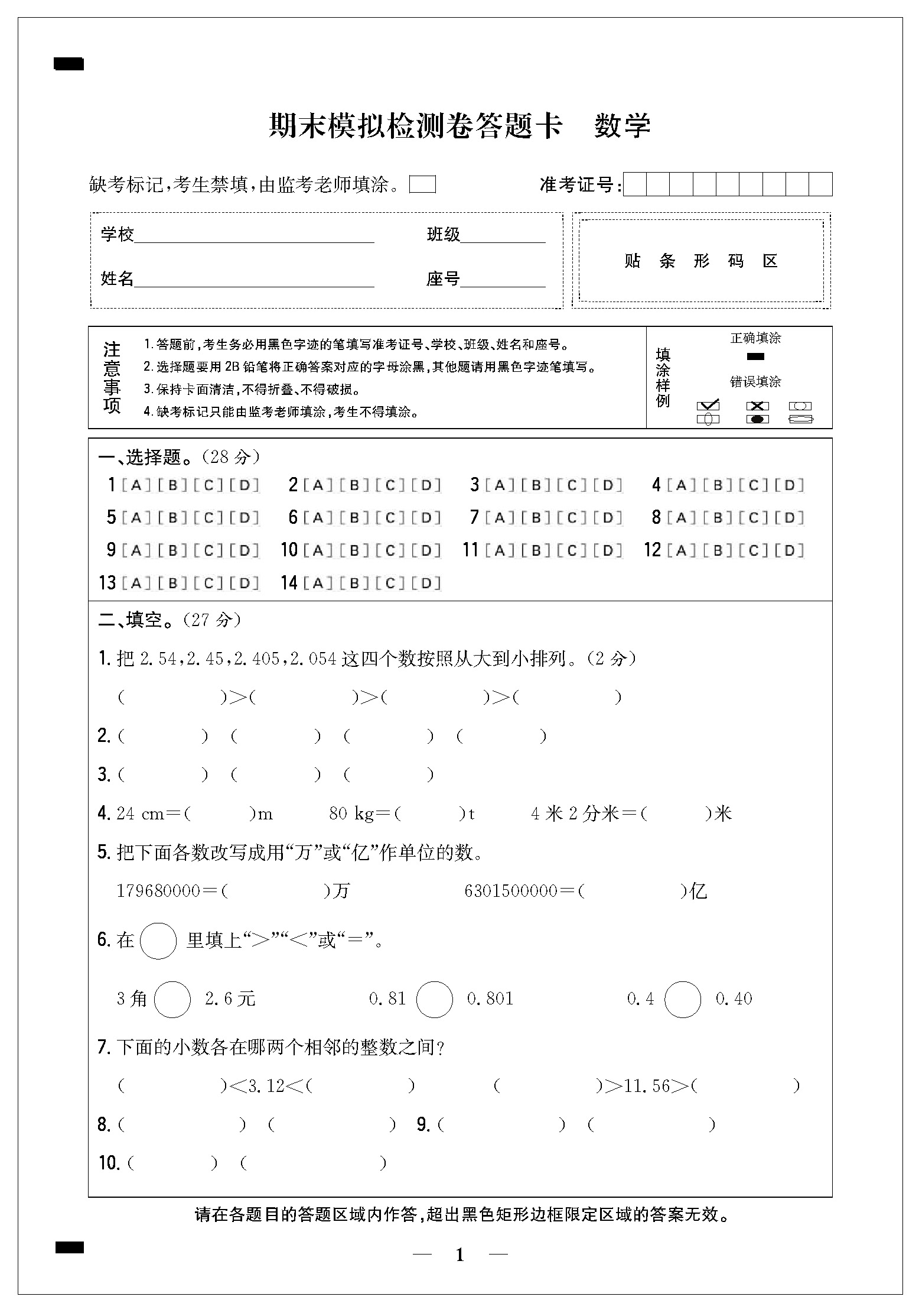 期末模拟检测卷答题卡21