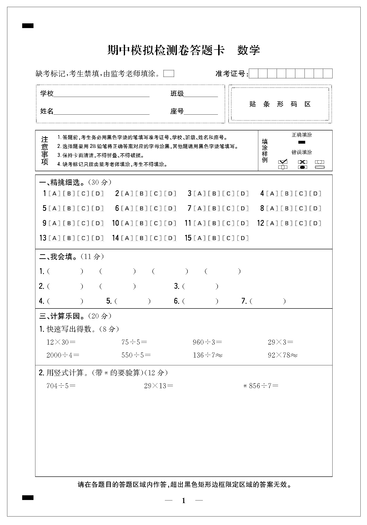期中模拟检测卷答题卡21