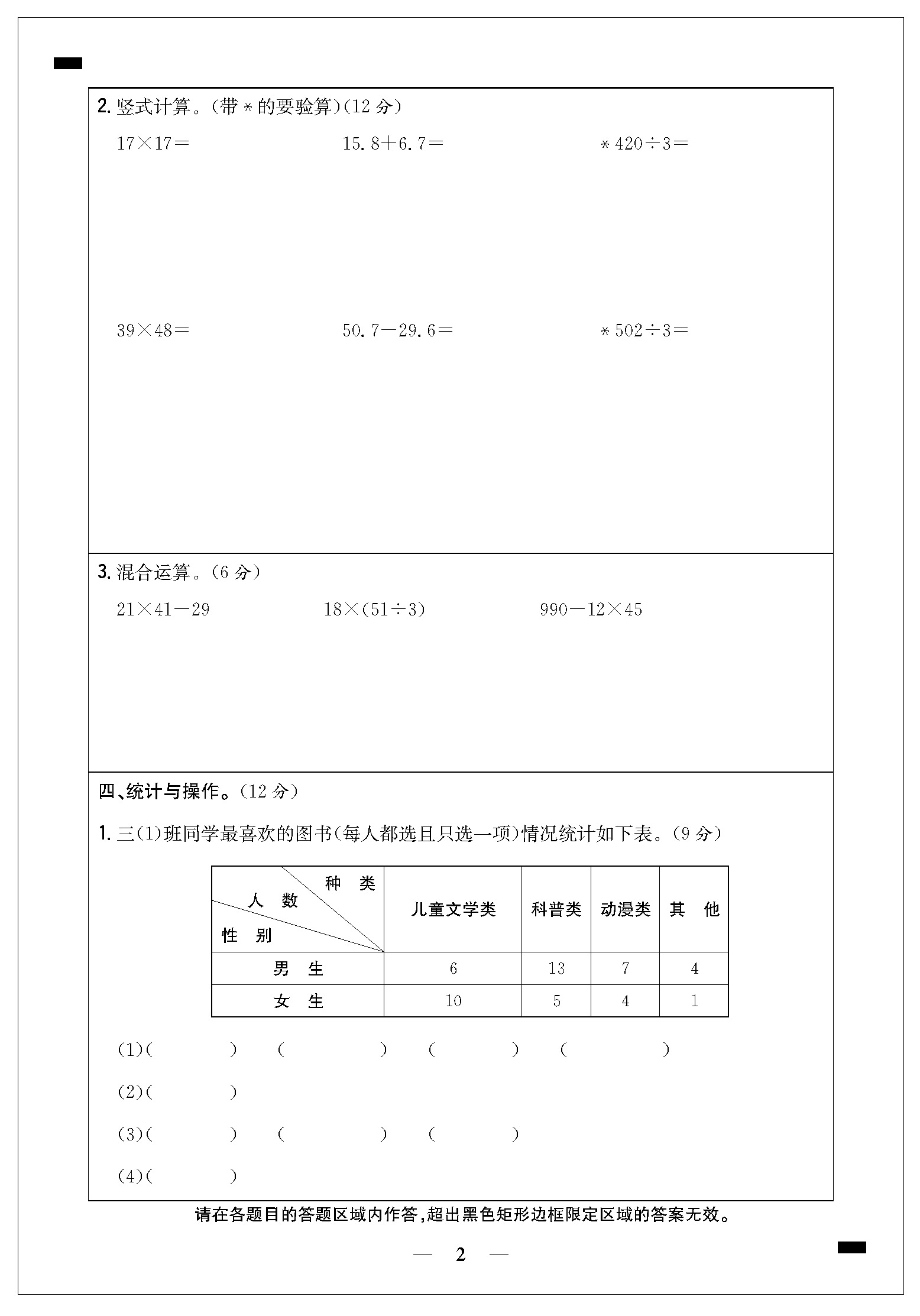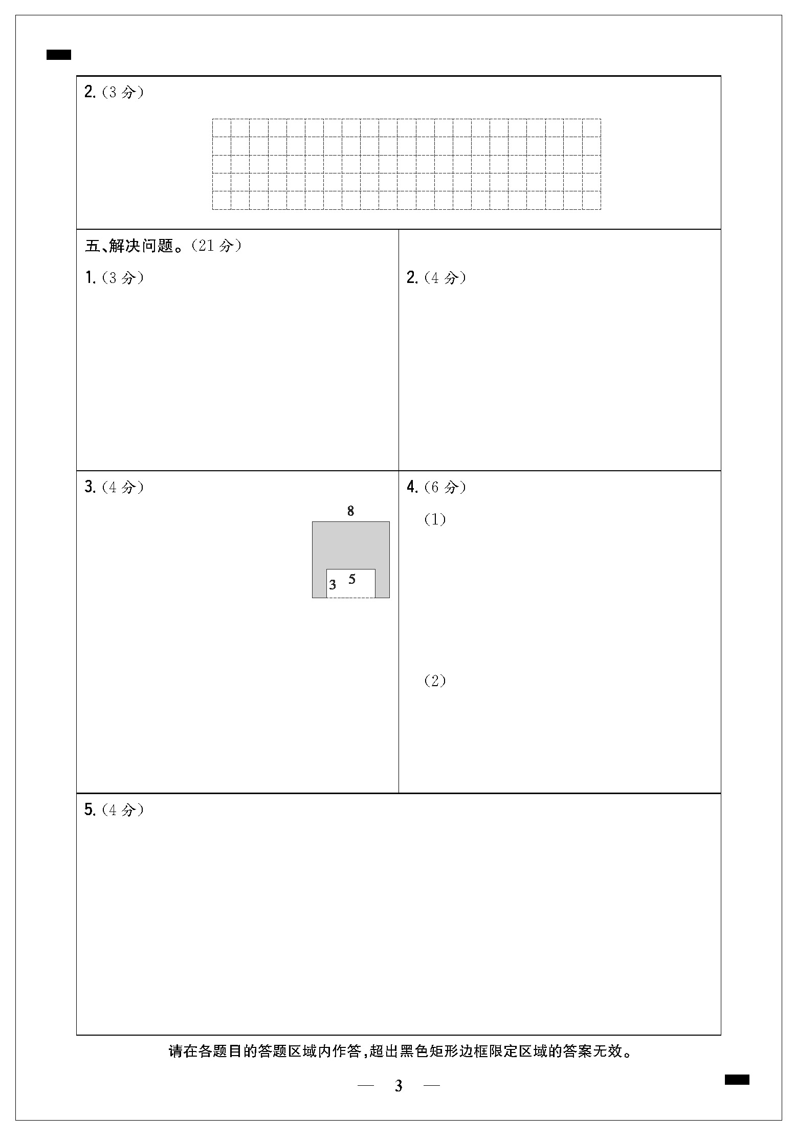 福州市三年级下册期末试卷答题卡21