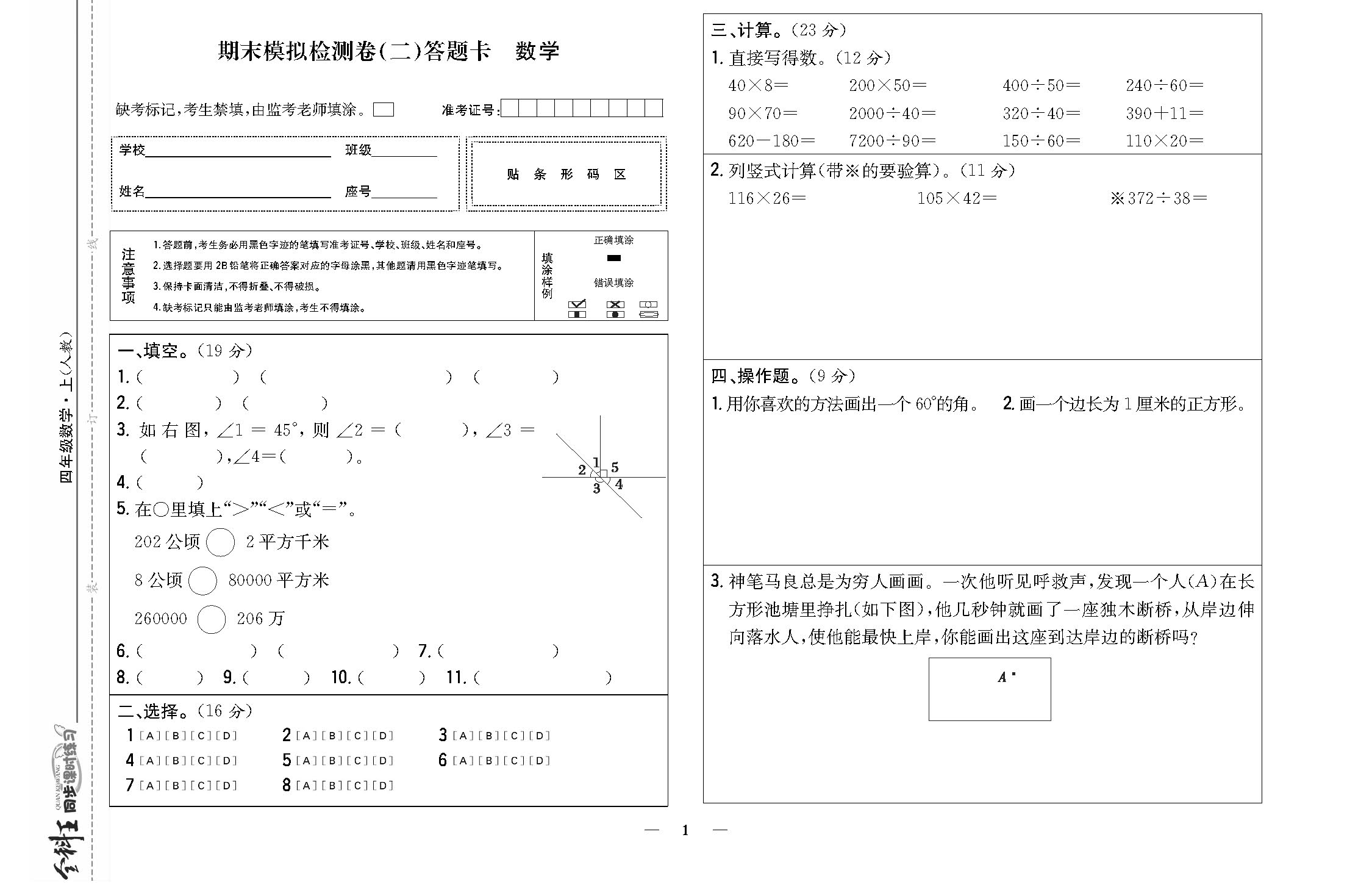 期末模拟检测卷(二)答题卡220405
