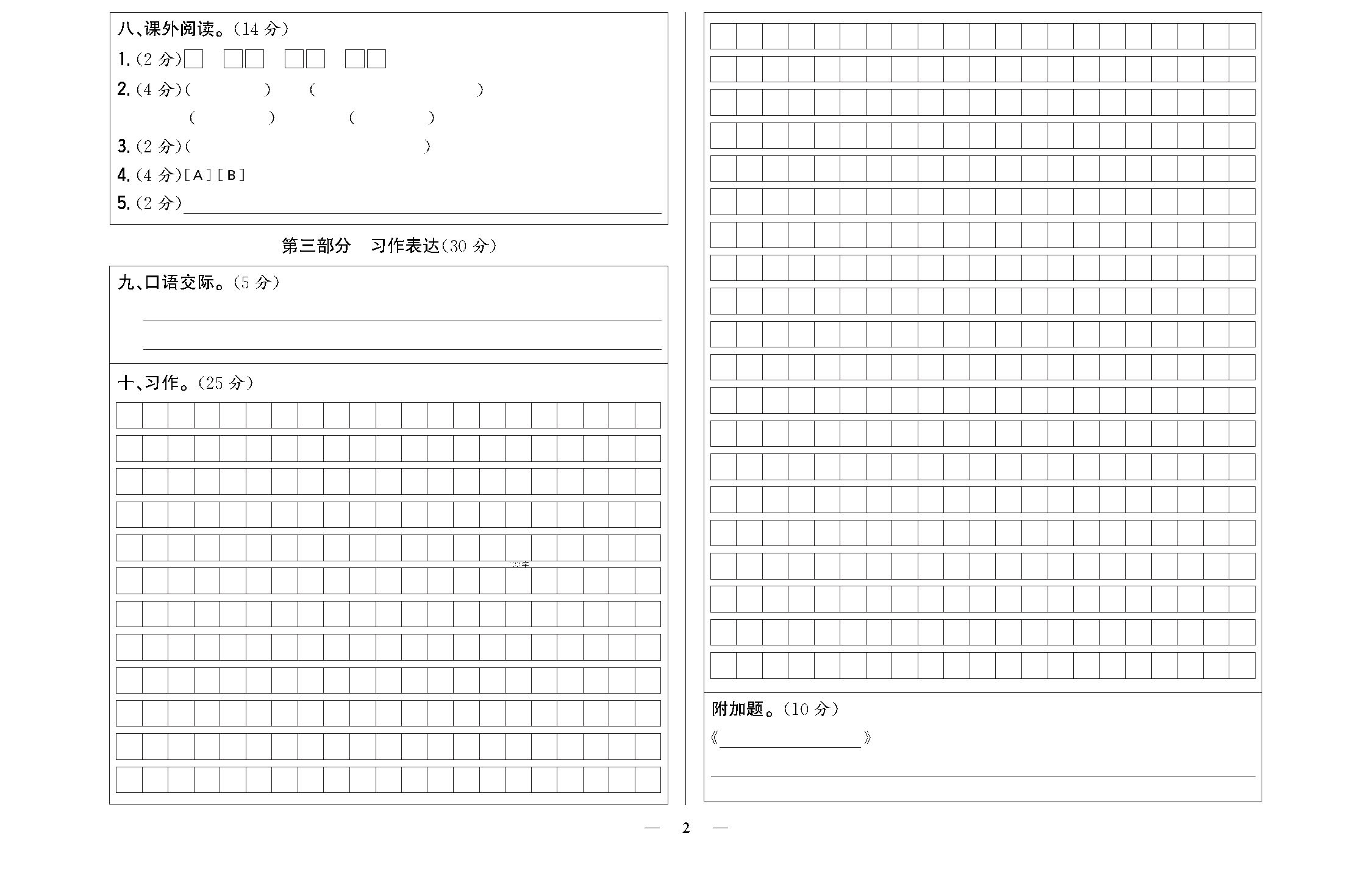 期末模拟检测卷 答题卡220408