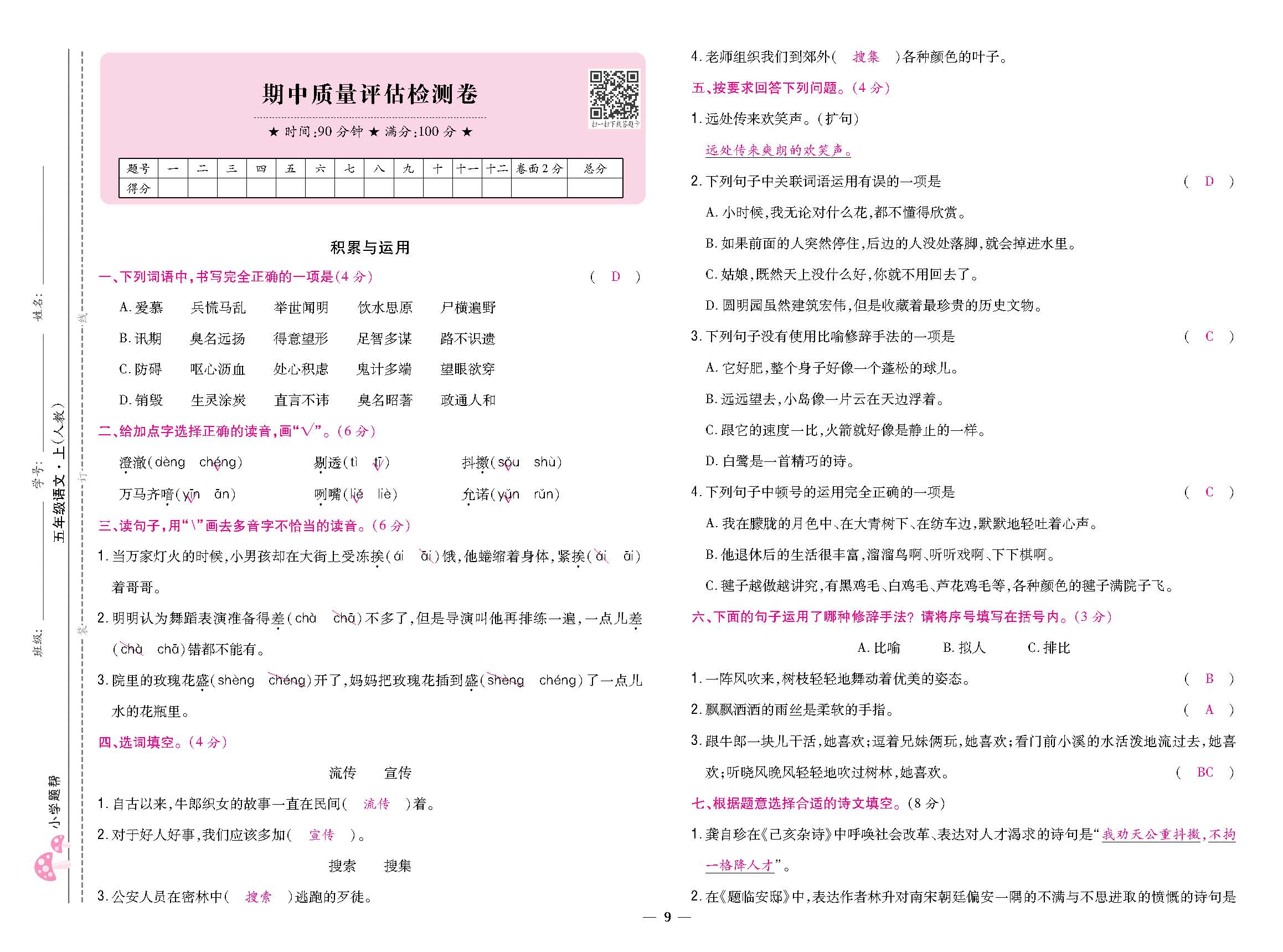 期中质量评估检测卷220731N