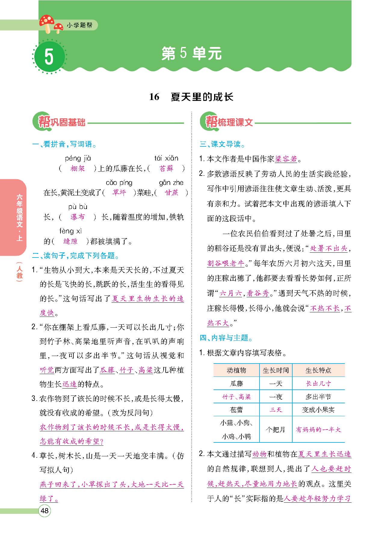 第5单元 16 夏天里的成长220729N