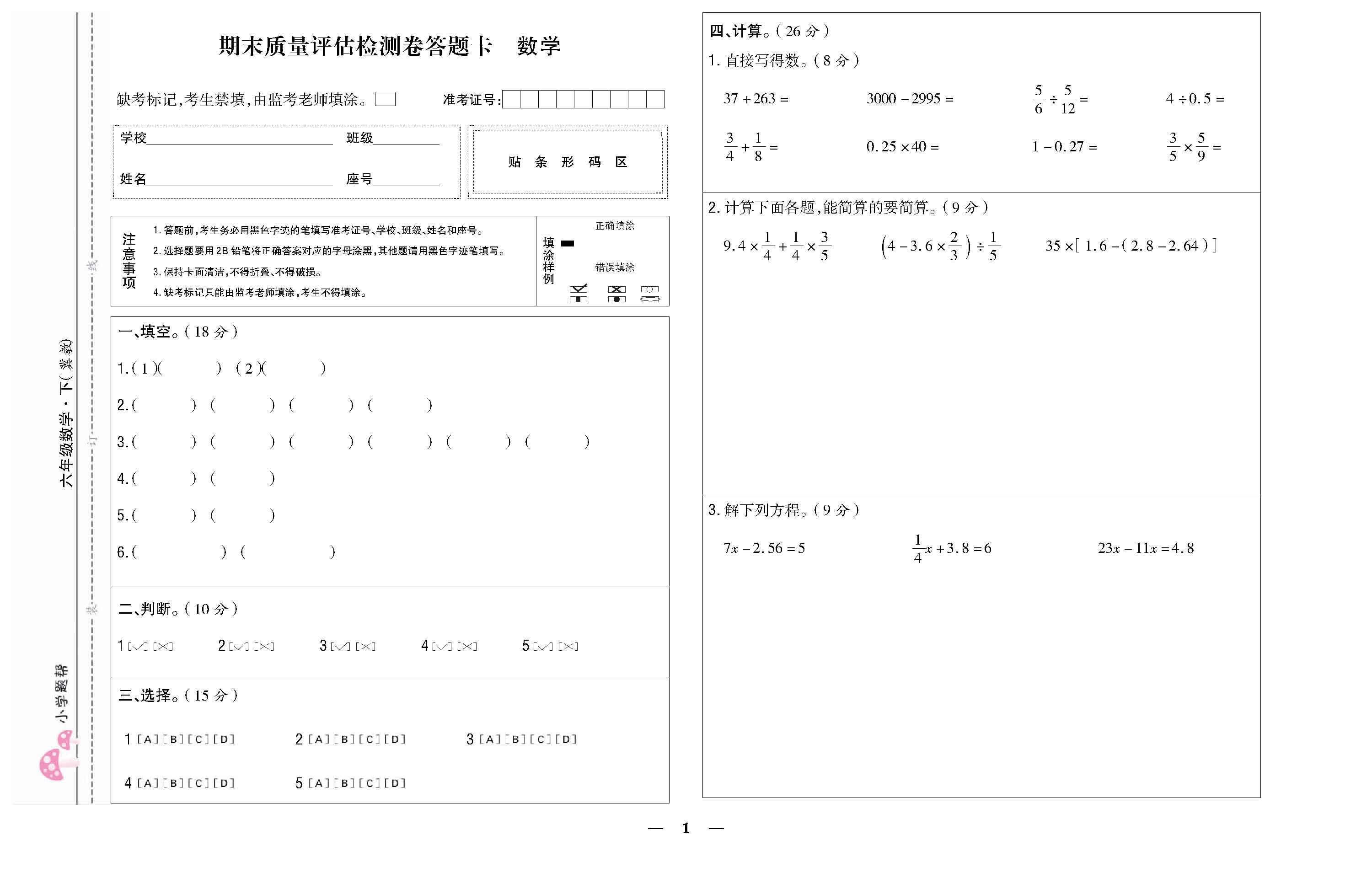 期末质量评估检测卷 220906