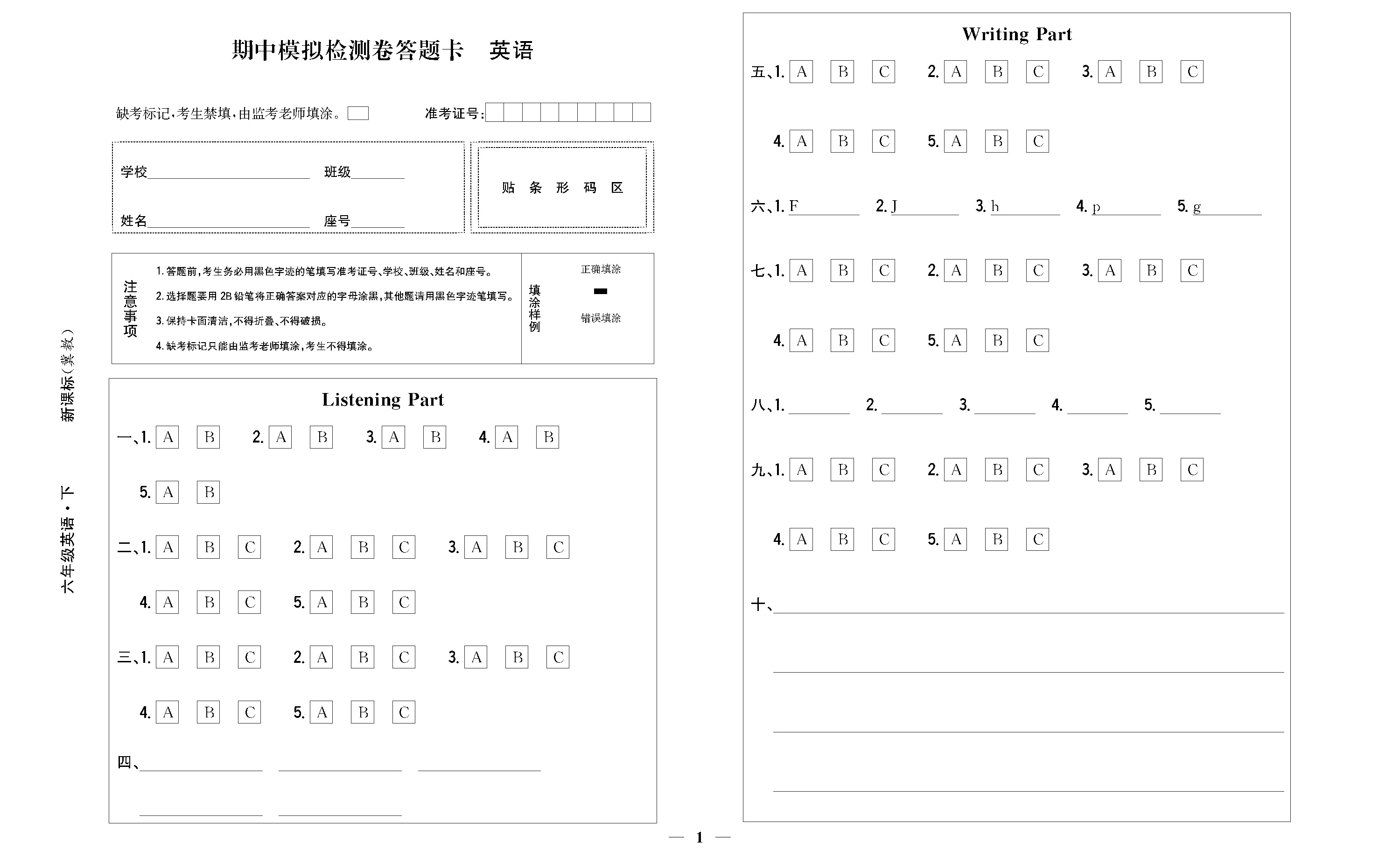 期中模拟检测卷 答题卡