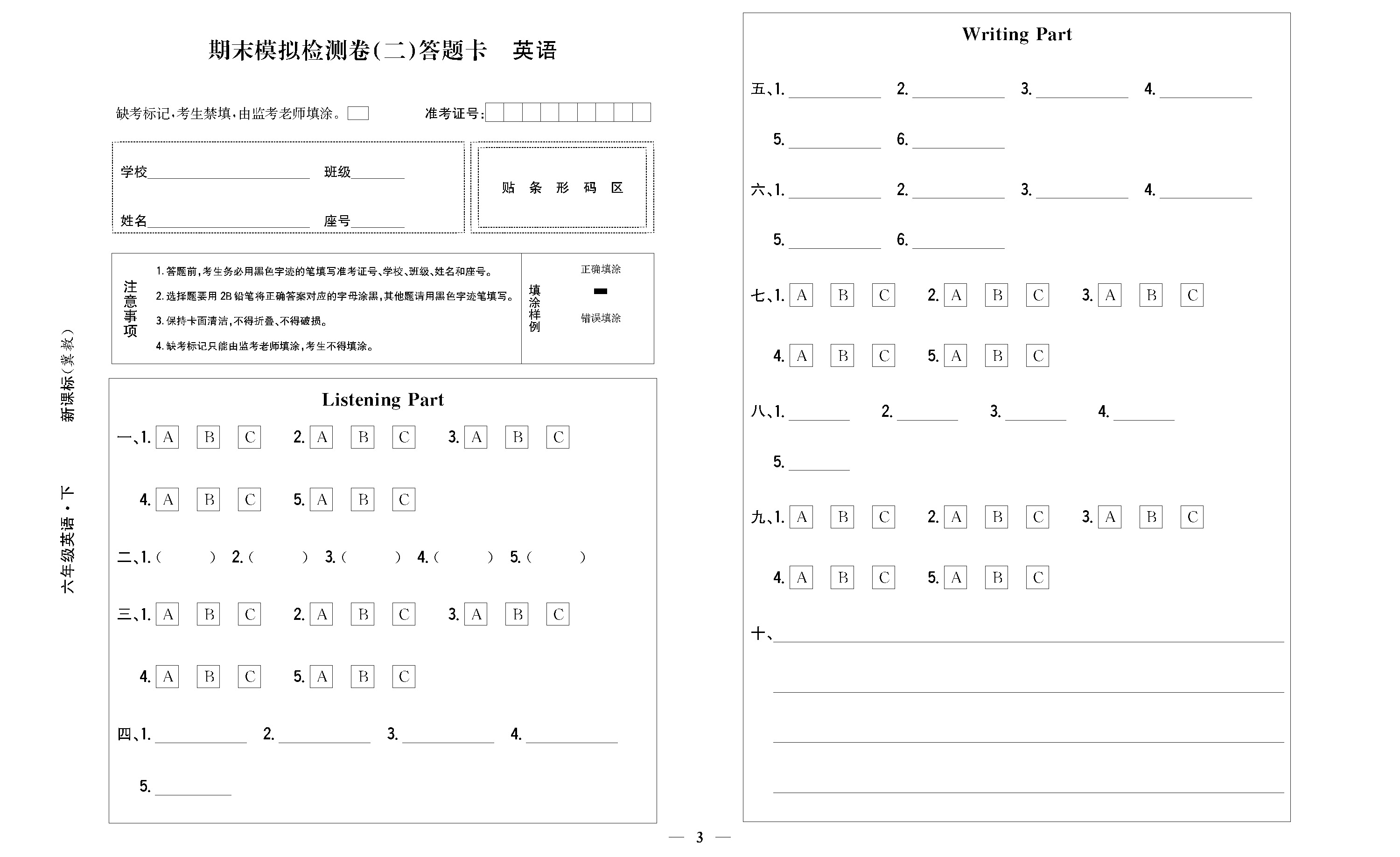 期末模拟检测卷(二) 答题卡