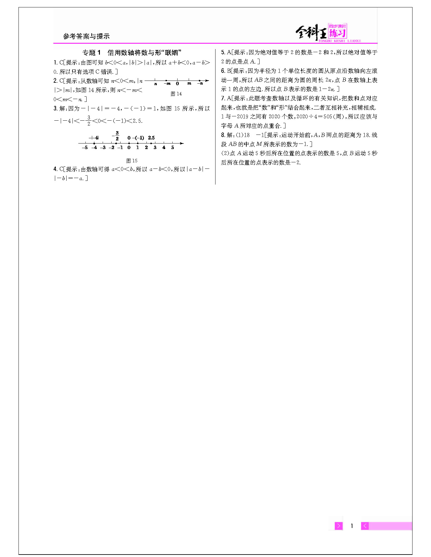 专题1 借用数轴将数与形“联姻”