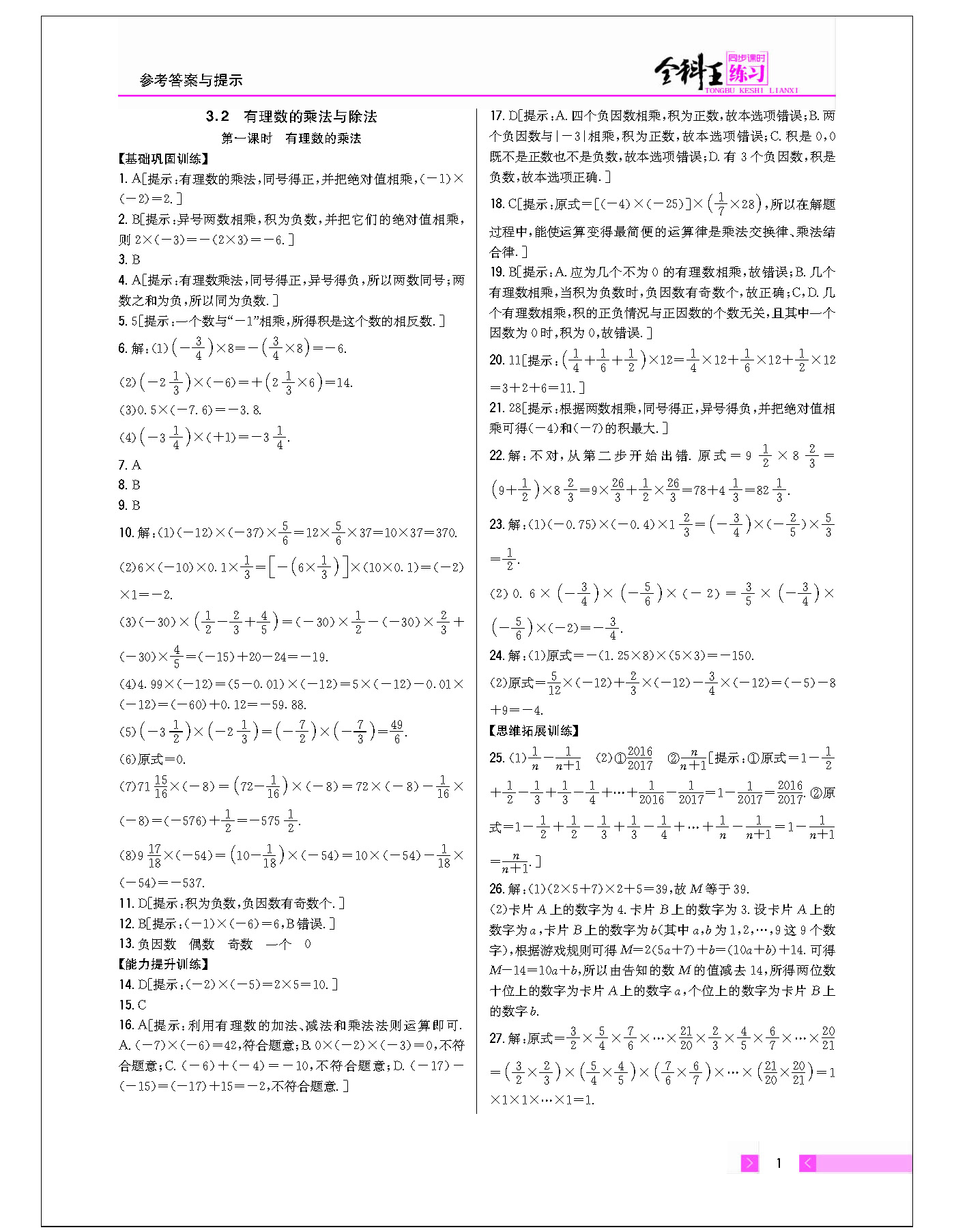 第一课时 有理数的乘法