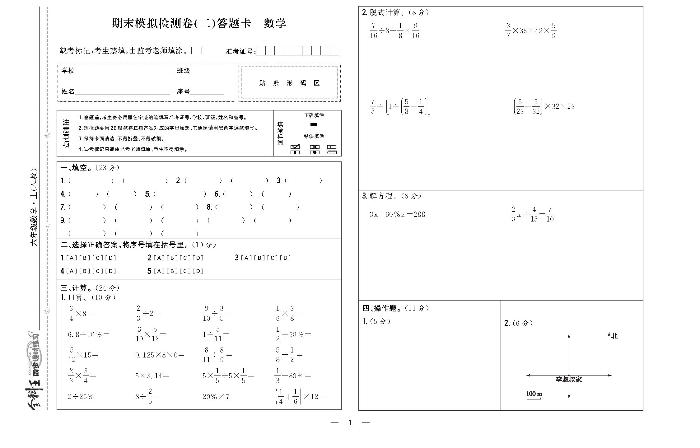 期末模拟检测卷(二)答题卡220405