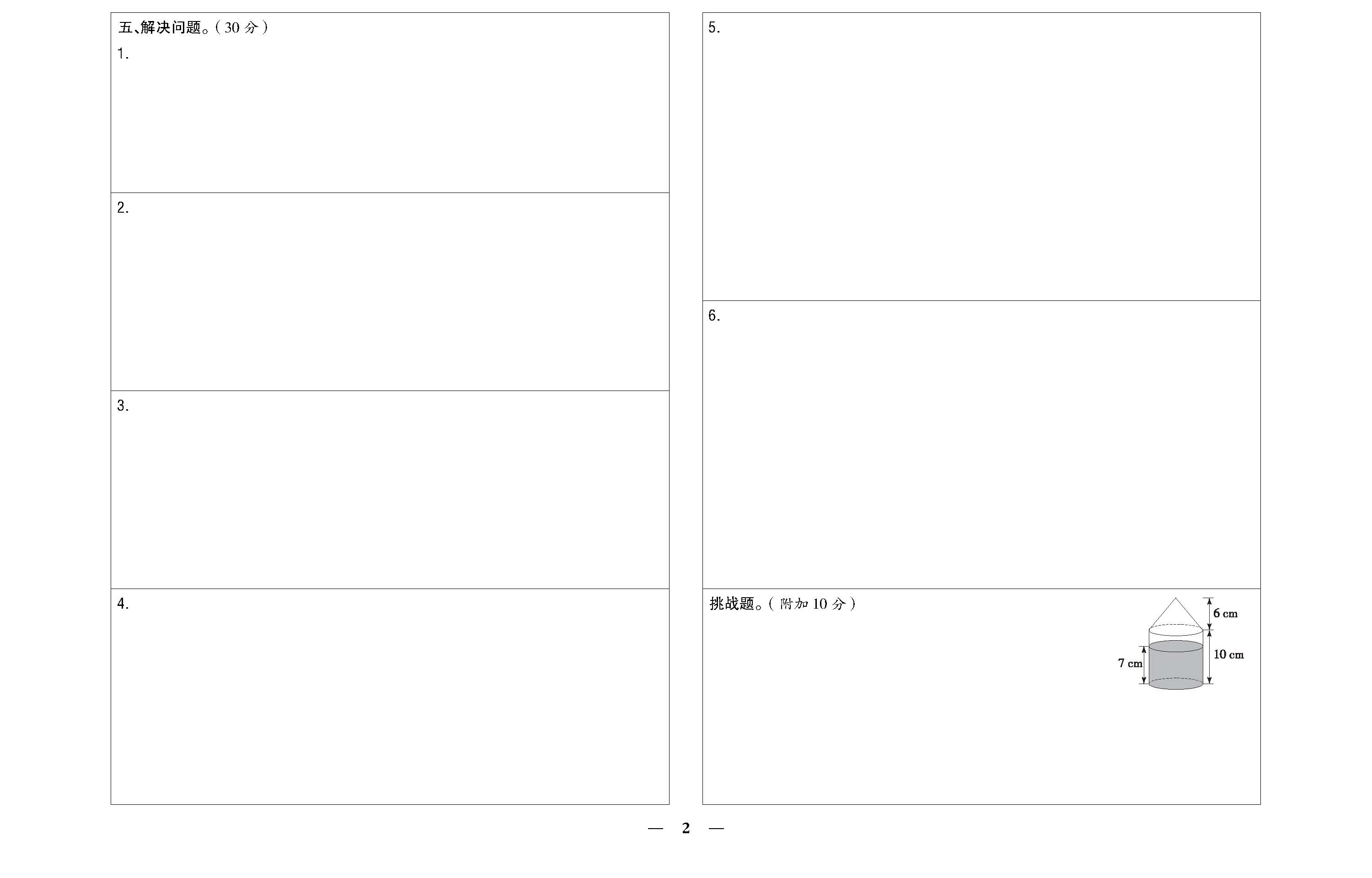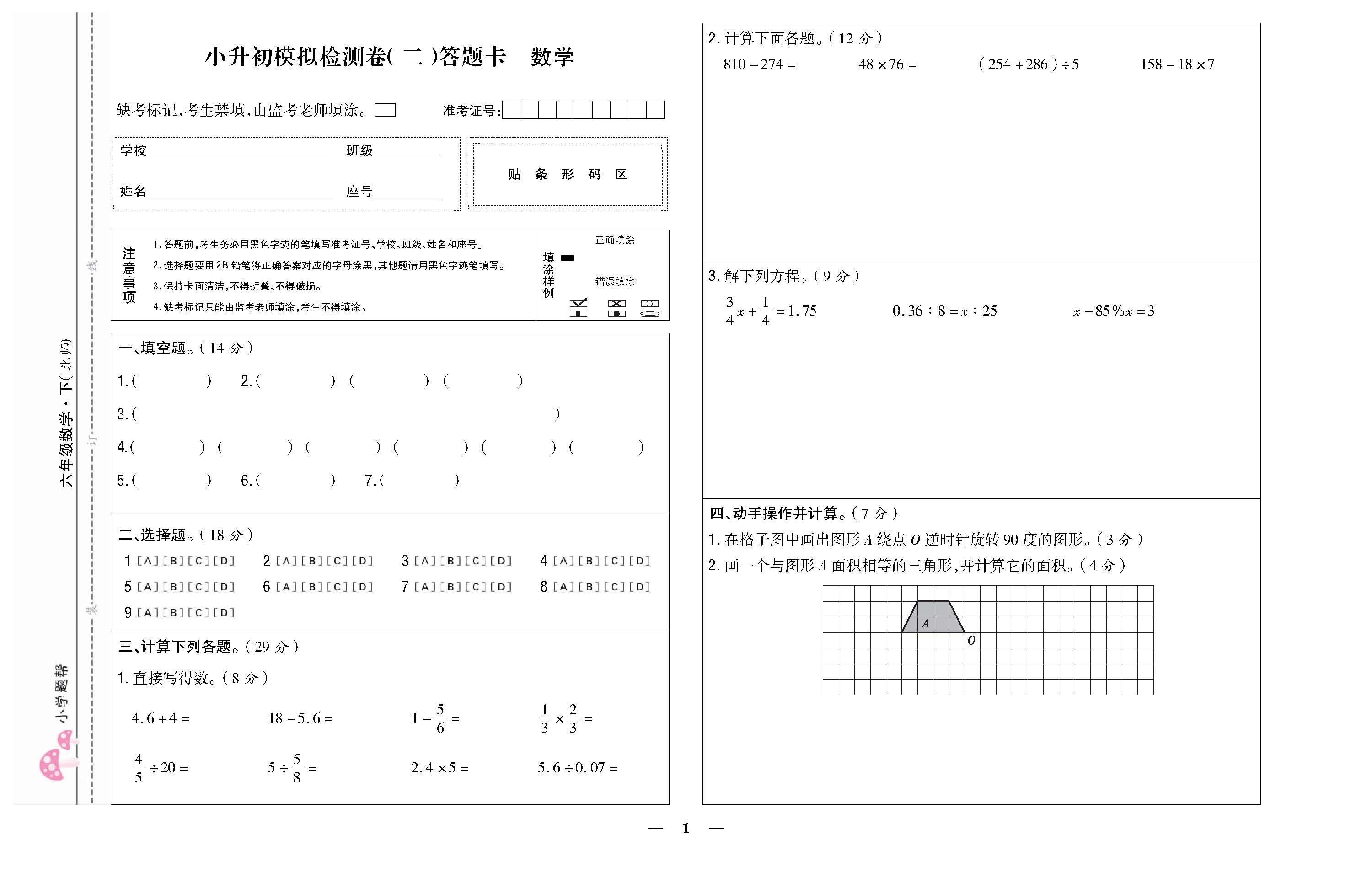 小升初模拟检测卷(二)答题卡220705