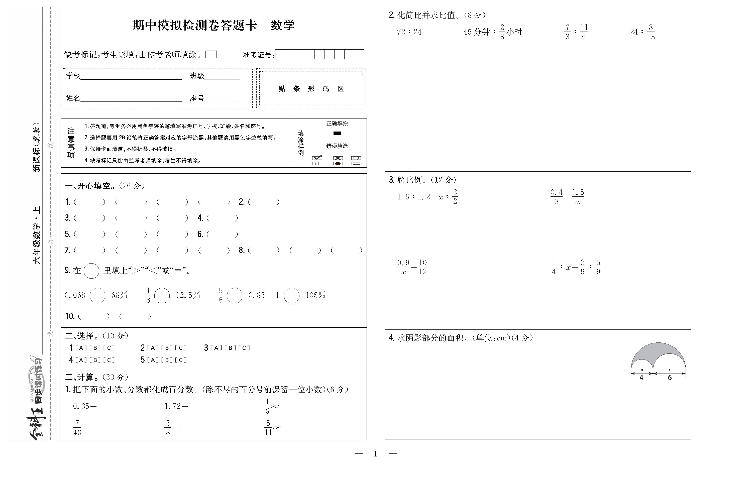 期中模拟检测卷 答题卡220712