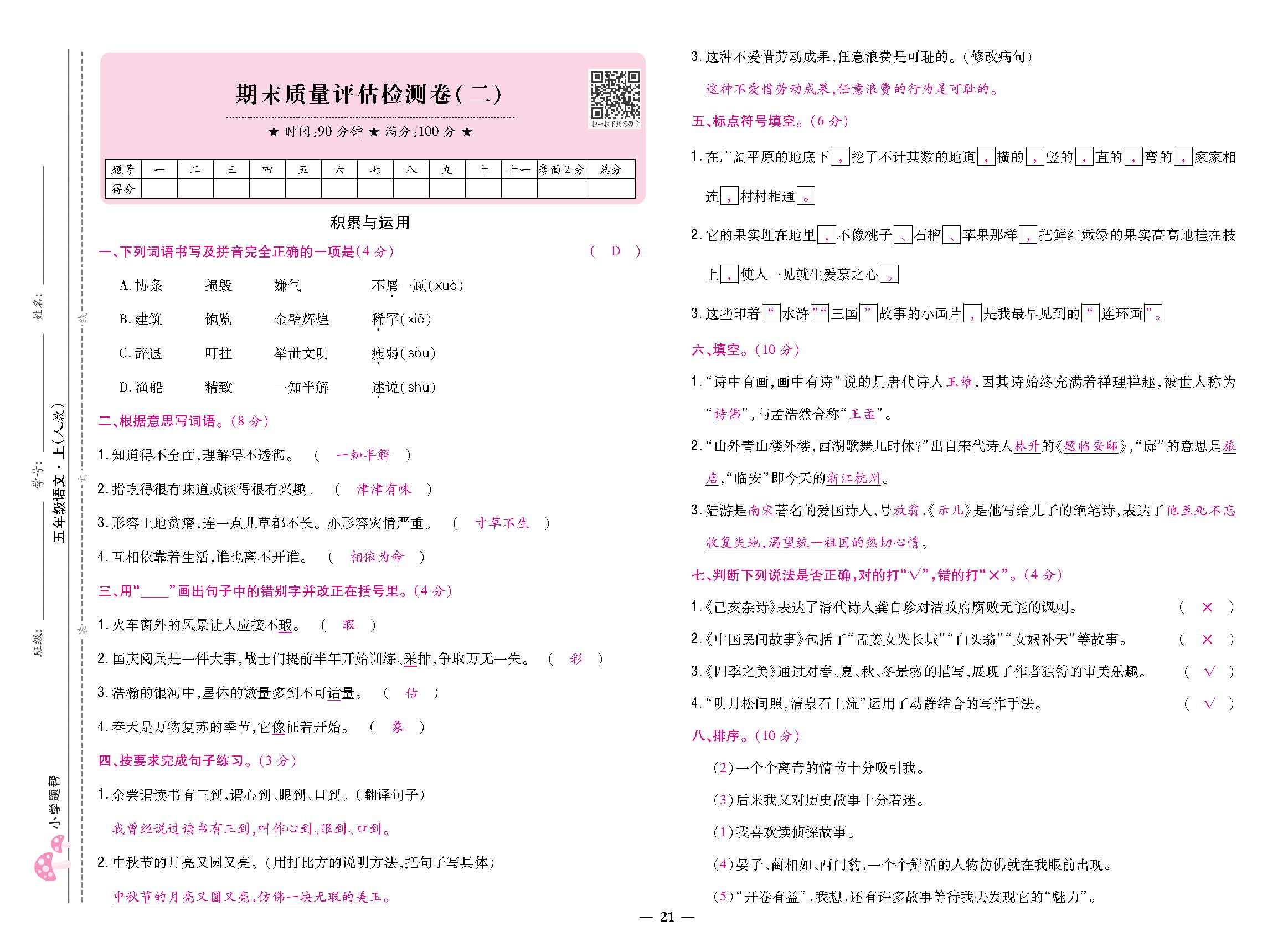 期末质量评估检测卷(二)220731N
