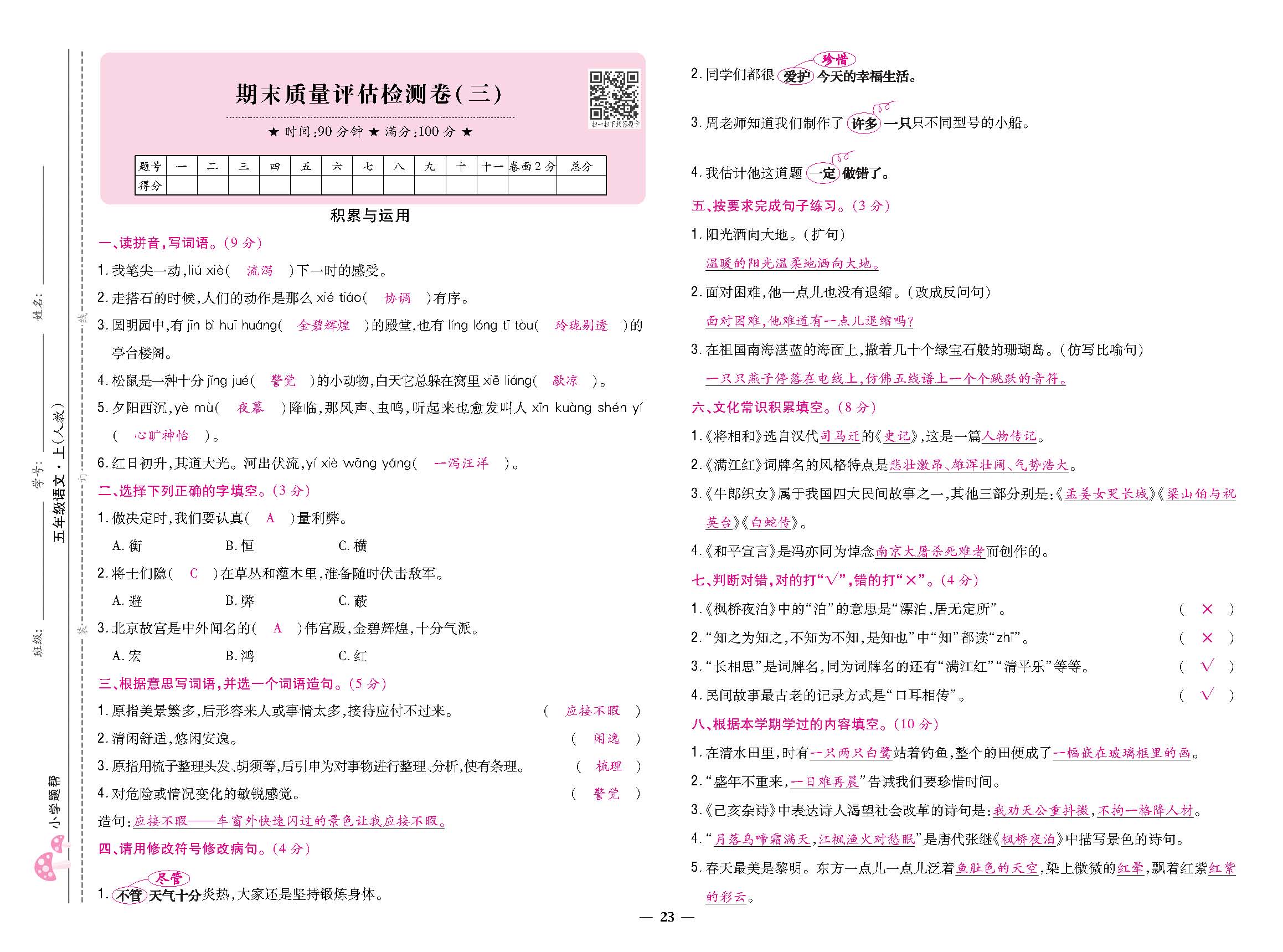 期末质量评估检测卷(三)220731N