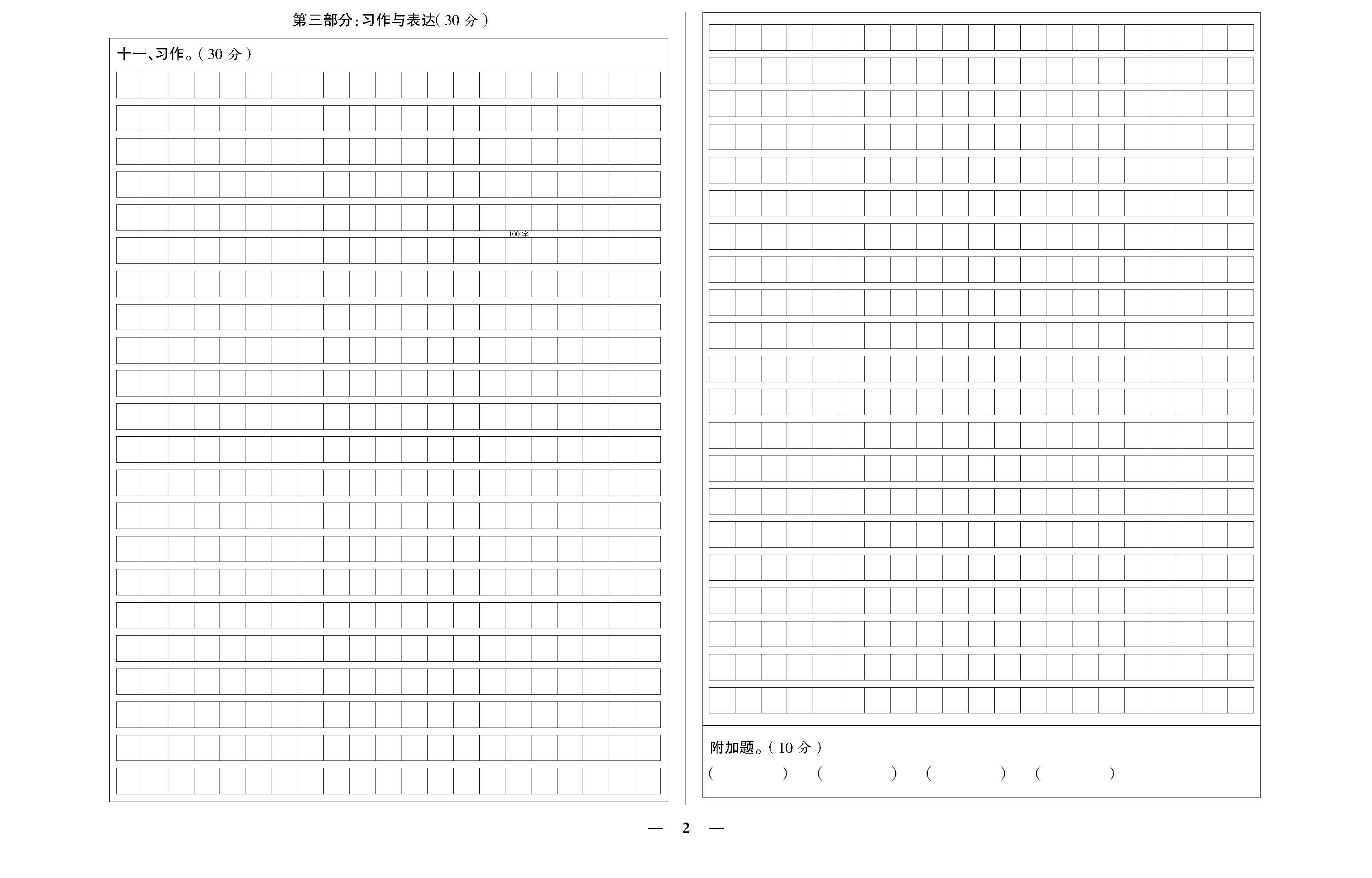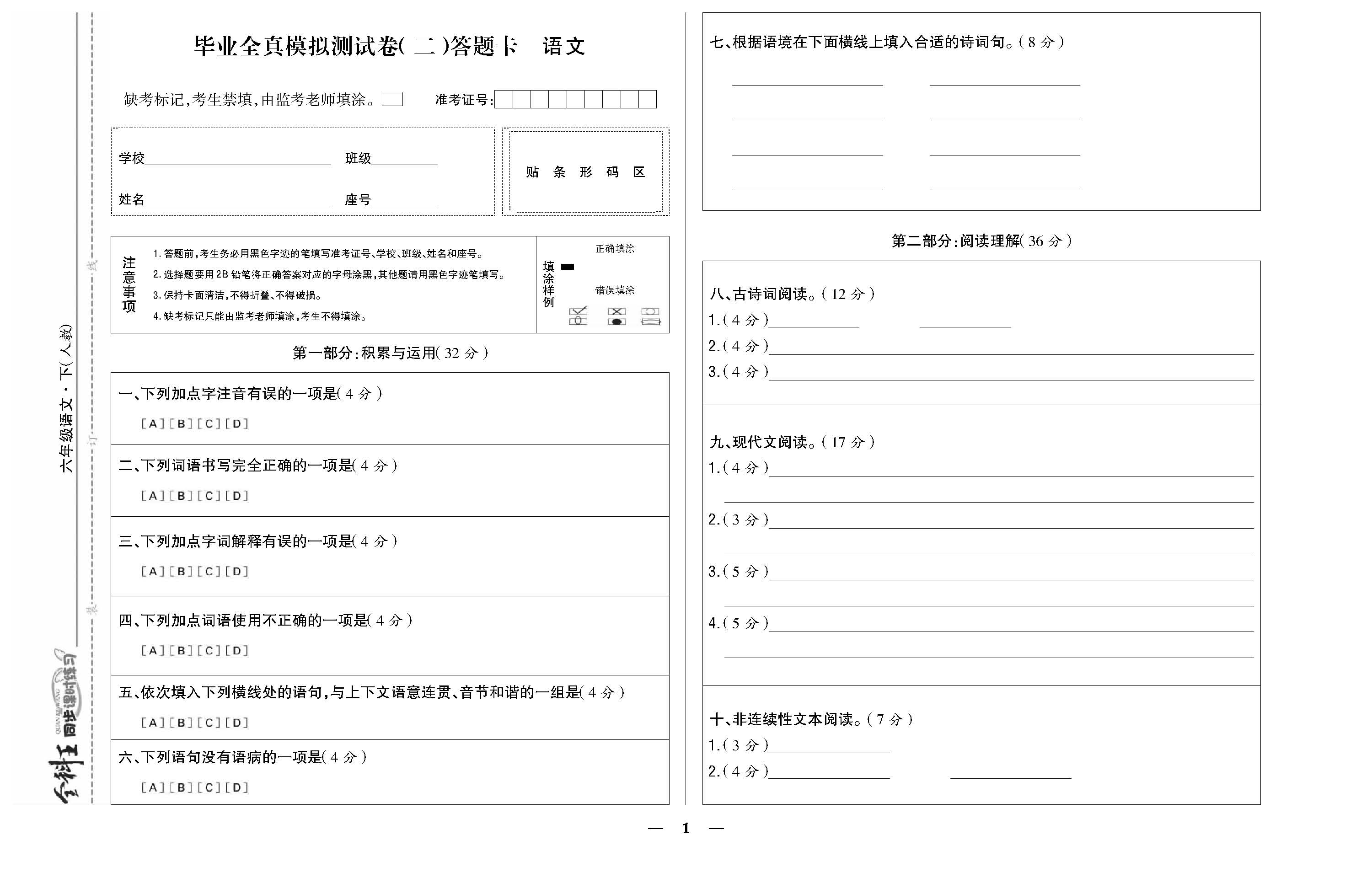 毕业全真模拟答题卡(二)220913