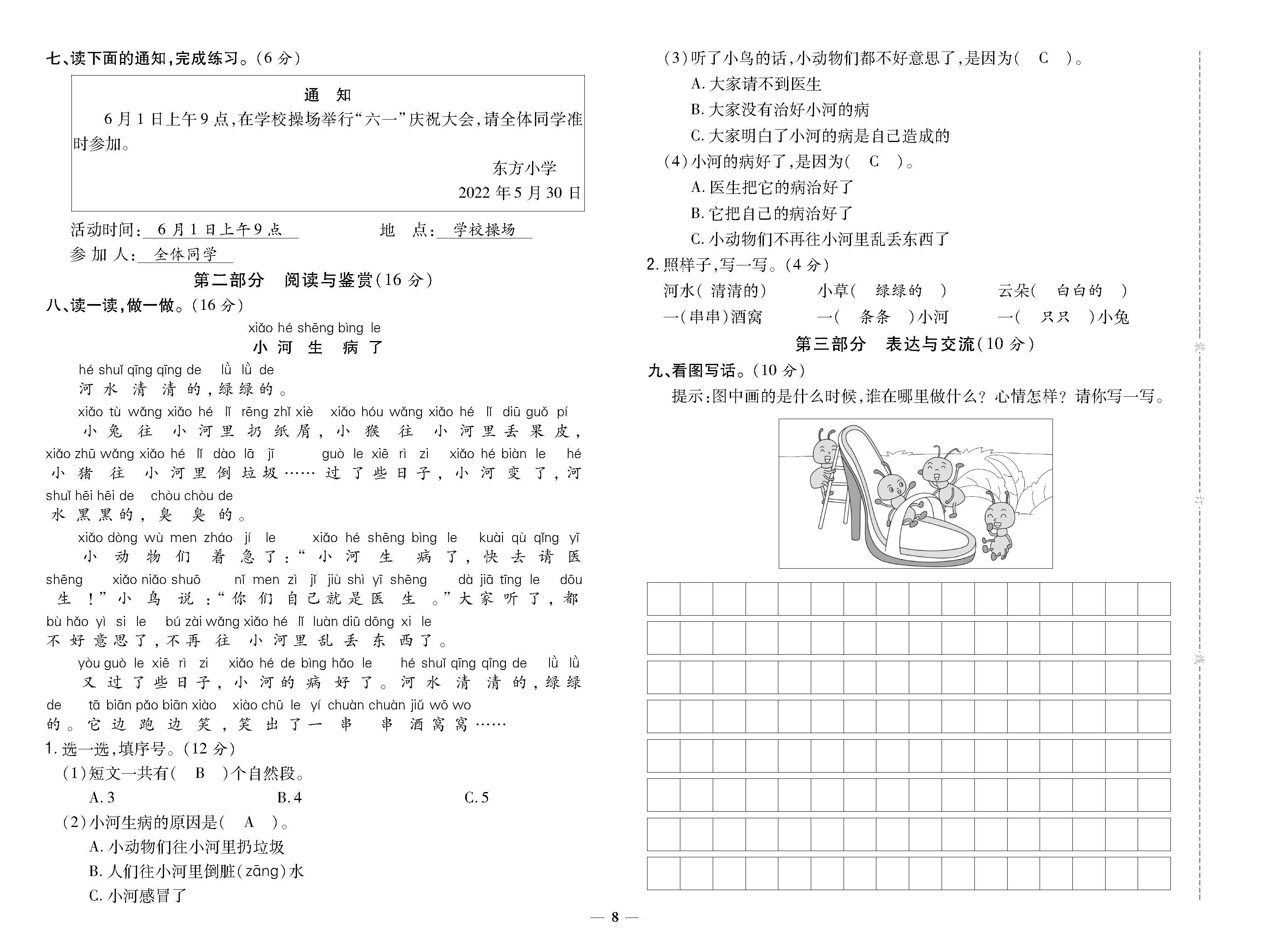 2021学年大田县第二学期一年级语文期末质量测评 221118